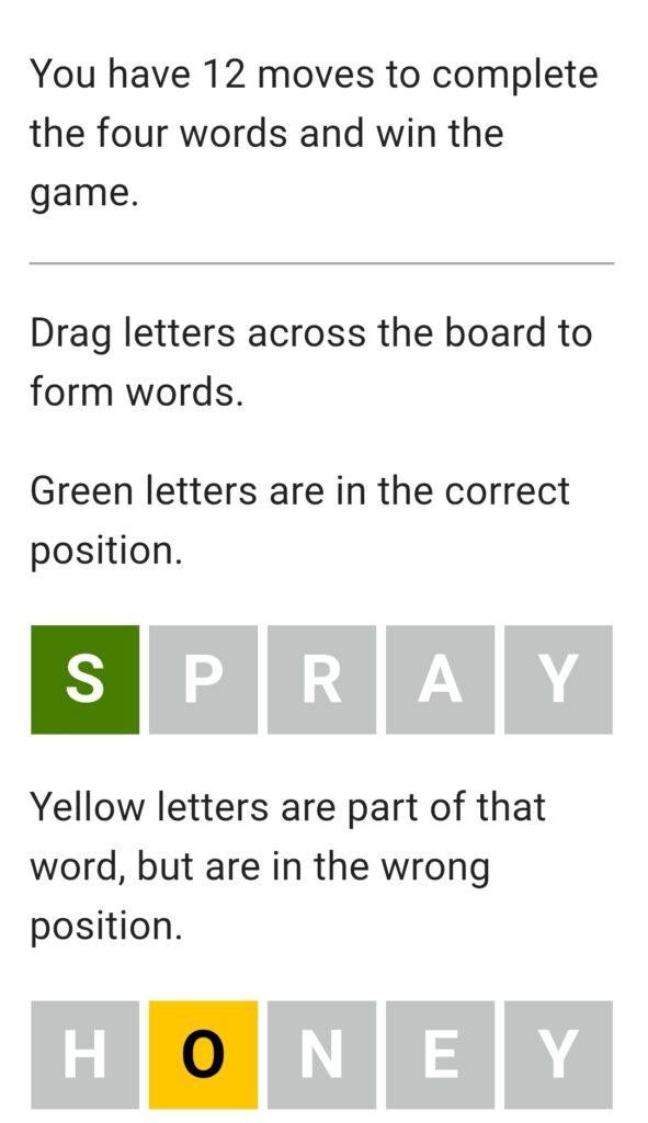 - For repeat letters, only the appropriate number of tiles will be colored, in order of exact matches then left to right.